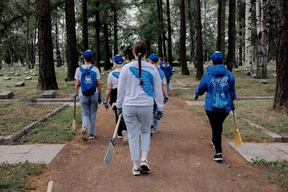 Добровольцы из разных регионов России узнали больше об истории Пискарёвского кладбища и о Героях, которые там захоронены, а также убрали весь мусор, засохшую листву, почистили таблички и заменили часть могильных плит.