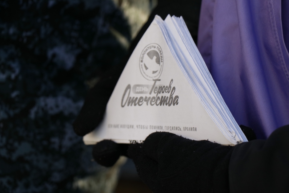 Волонтёры раздавали жителям треуголки с информацией о Героях, чьи имена увековечены в названиях улиц города. Каждая треуголка содержала исторические сведения о Герое, его подвигах и заслугах перед Отечеством. Таким образом, волонтёры старались привлечь внимание общественности к историческому наследию и уважению к героическому прошлому.