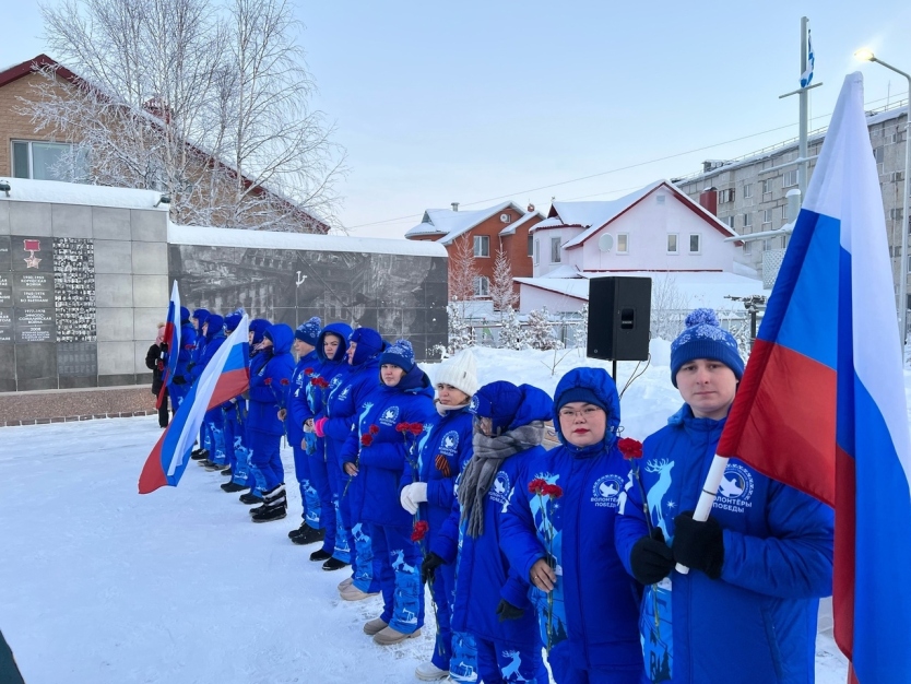 В городе Надым в Сквере воинской славы прошла торжественная церемония возложения цветов, кроме того, Волонтёры приняли участие во Всероссийской акции и раздали в городе треугольники с информацией о сегодняшней памятной дате.