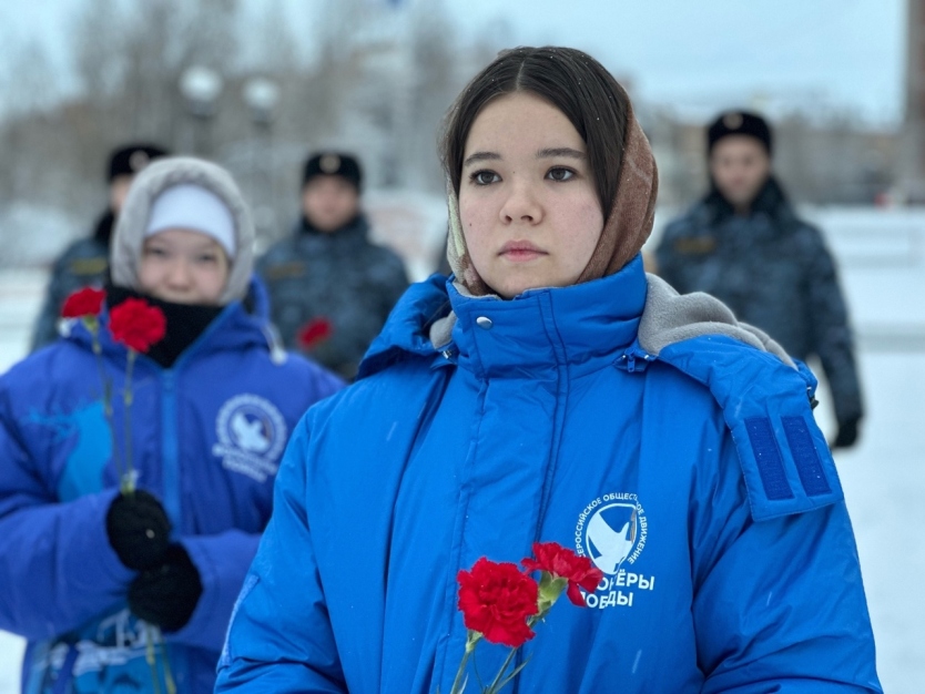 Ребята очистили от снега территорию монумента и возложили у его подножия цветы, почтив минутой молчания память Героев, защищавших наше Отечество.