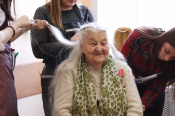 Перед началом концерта для наших дорогих ветеранов работали профессиональные парикмахеры и визажисты, которые сделали прически и макияж.