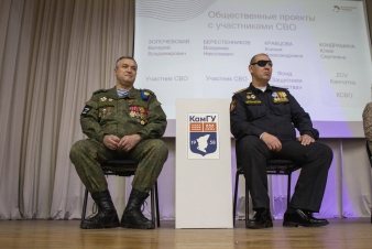 В рамках форума прошла панельная дискуссия «Общественные проекты с участниками СВО», на которую были приглашены участники Специальной военной операции: Валерий Золочевский — Председатель городского совета ветеранов г. Вилючинска и Владимир Берестенников — Председатель Исполнительного комитета ККО ВООВ «Боевое Братство», а также Юлия Кондрашина — организатор «ZOV Камчатка», представитель Комитета семей воинов Отечества в Камчатском крае и Ксения Кравцова — заместитель руководителя по общественным проектам фонда «Защитники Отечества».