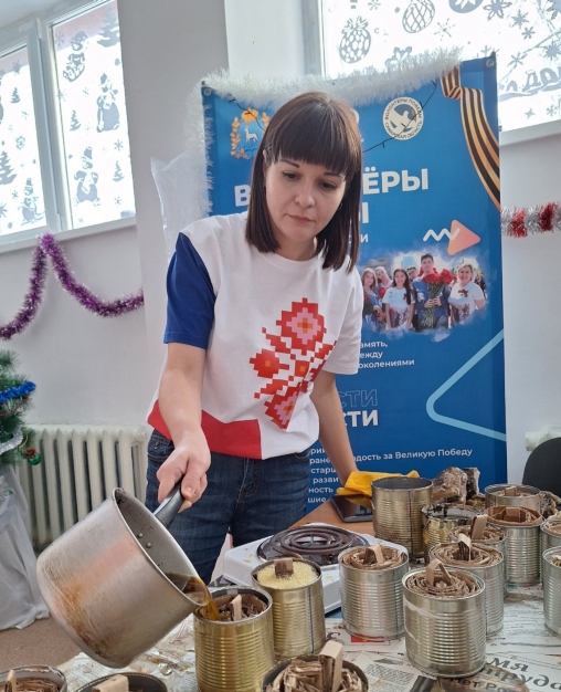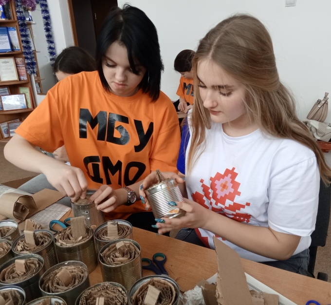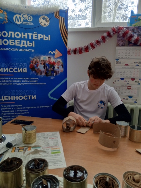 В зимние каникулы Волонтёры Победы Красноармейского района совместно с активистами Дома молодёжных организаций решили не оставаться в стороне и приступили к изготовлению окопных (блиндажных) свечей. Такие свечи - незаменимые помощники в полевых условиях. Ими можно обогреться, высушить вещи, вскипятить воду. Кроме того, они долго горят.