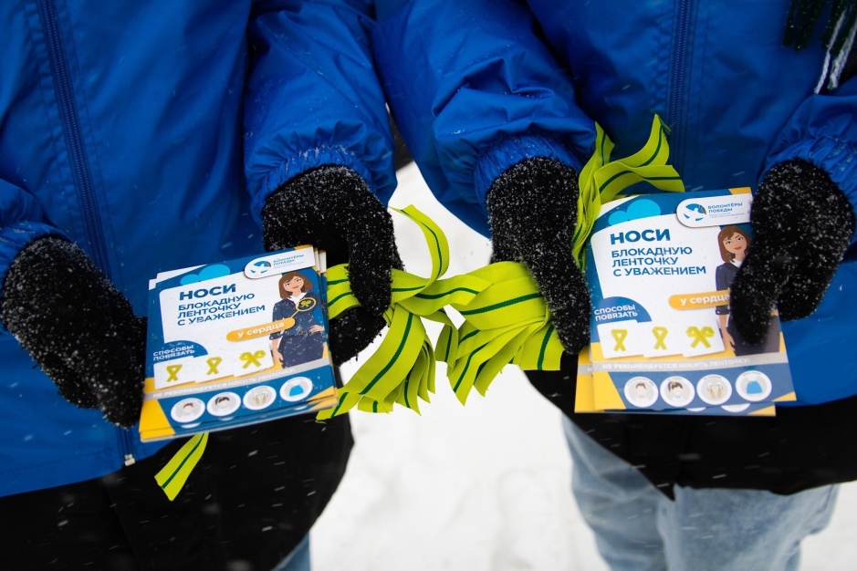 Блокадная ленточка ведет свою историю от ленты к медали «За оборону Ленинграда», утвержденной 22 декабря 1942 года. Она состоит из полос ткани двух цветов: оливкового, символизирующего Победу, и зеленого, олицетворяющего жизнь. Впервые акция, в ходе которой добровольцы распространяли подобные ленты на улицах города Санкт-Петербурга, прошла в 2009 году и была приурочена к 65-й годовщине полного освобождения Ленинграда от нацистской блокады. Постепенно акция приобрела Всероссийский масштаб и сегодня проводится во многих городах нашей необъятной страны.