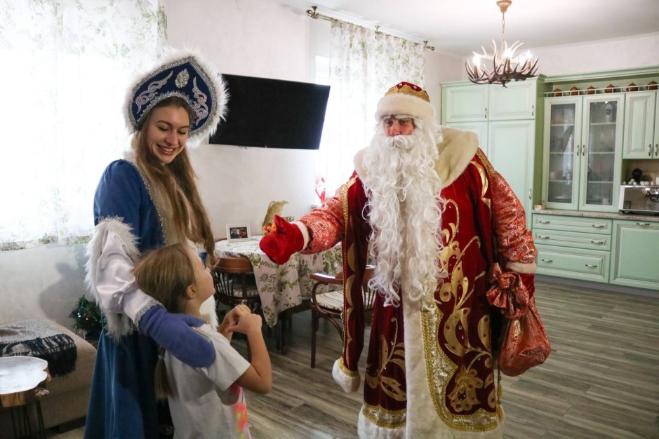 Одними из первых поздравления получили семья Ольги и семья Елены, мужья которых сейчас находятся на передовой, в зоне проведения спецоперации. У Ольги трое детей, у Елены — двое. Каждый ребенок получил заряд хорошего настроения и частичку предновогоднего волшебства.