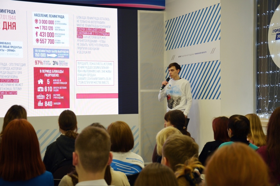 В преддверии 80-летия снятия блокады Ленинграда Волонтёры Победы провели урок памяти «Блокадный хлеб» в Штабе общественной поддержки Тюменской области.