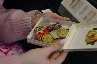 Также он показал медали своих родных, которыми они были награждены во время войны. Среди них: Орден Отечественной войны, медаль «За оборону Ленинграда», медаль «За победу над Германией в Великой Отечественной войне 1941—1945 гг.» и другие.