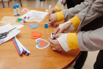 Во время форума был проведен мастер класс по изготовлению сердец из фетра. Эти сердца обычно изготавливаются Волонтёрами Победы и отправляются в зону СВО для поднятия настроения бойцам. Но в этот раз все участники форума уходили с площадки Волонтёров Победы с памятным сердечком, сделанным собственными руками, и лентой триколор.