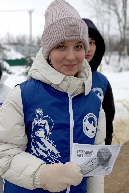- Волонтёры Победы Собинского района не смогли остаться в стороне и приняли участие в акции «Блокадный хлеб». В рамках акции волонтёры раздали информационные листовки о блокаде Ленинграда, а также символ акции памяти - небольшой кусочек хлеба весом 125 грамм. Волонтёрам удалось донести до жителей района, что кусочек «блокадного хлеба» — это символ, и главное — это наша память о героических и трагических событиях Великой Отечественной войны, о мужестве и стойкости ленинградцев.