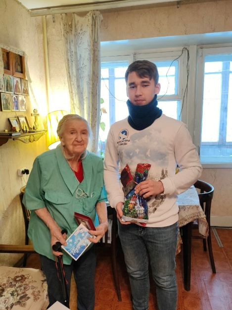 Ребята подарили подарки, вручили поздравительную открытку Движения, помогли по хозяйственным вопросам и просто оказали максимум заботы и тепла нашим Героям. Ветераны Великой Отечественной войны угостили волотёров теплым чаем, а также рассказали о событиях того времени.