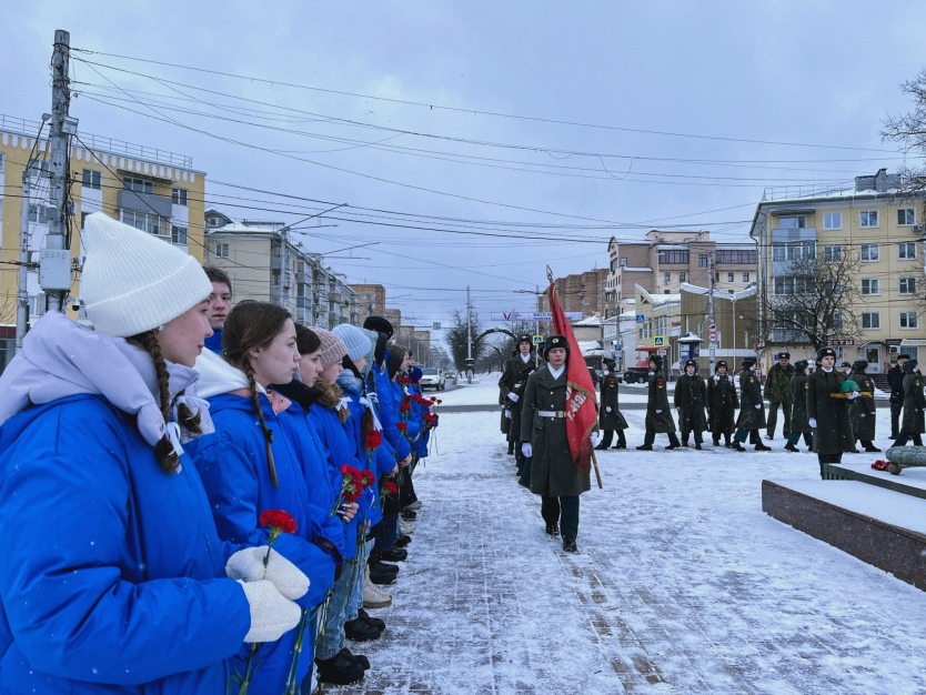 Сегодня утром на площади Победы регионального центра Калужской области участники Всероссийского общественного движения «Волонтёры Победы» совместно с почётным караулом Поста №1 возложили цветы к постаменту Вечного огня в честь 81-ой годовщины полного разгрома Советскими войсками нацистских войск в Сталинградской битве.