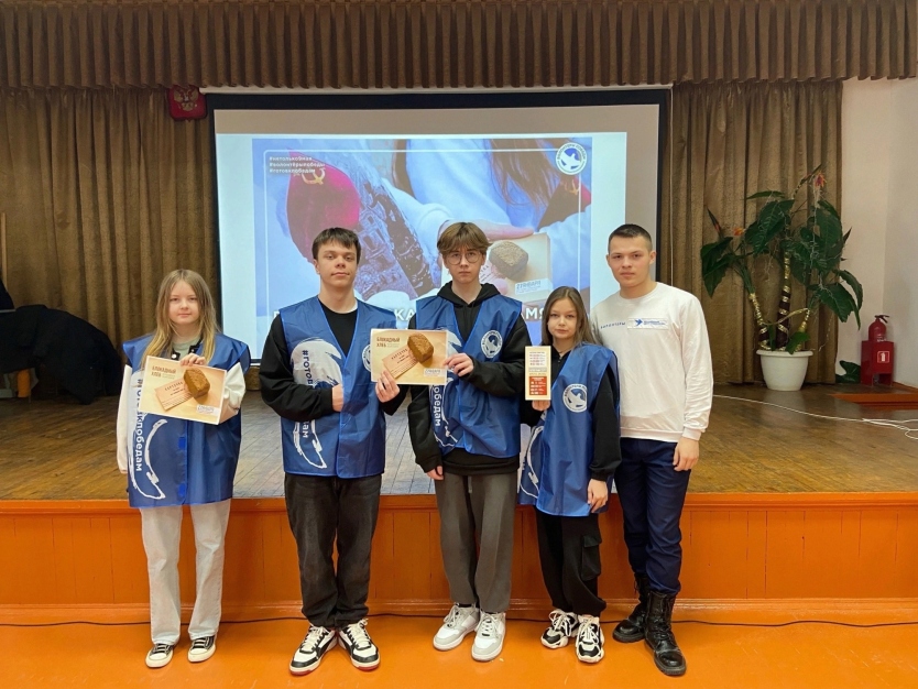 В конце урока для всех участников была проведена викторина. Команды набравшие наибольшее количество баллов получили памятные подарки от Волонтёров Победы.