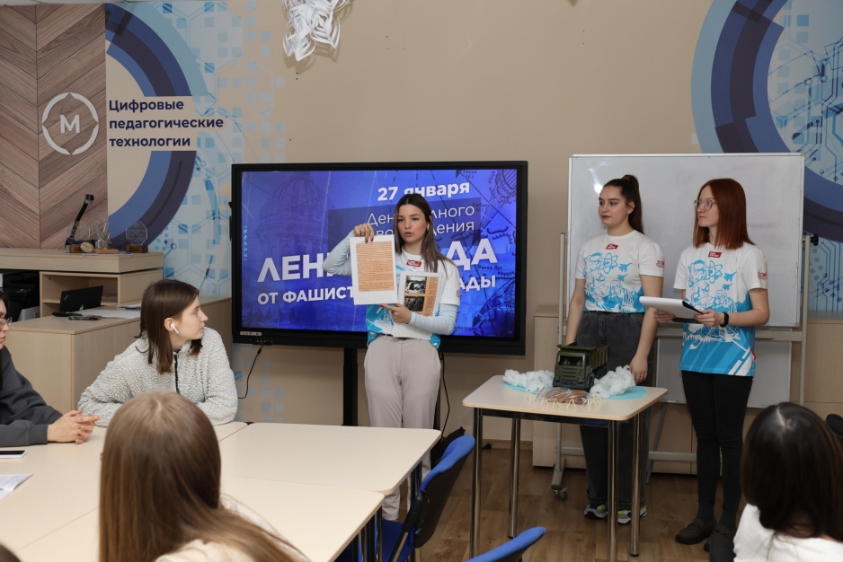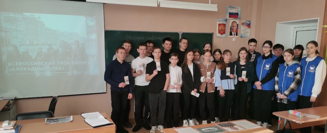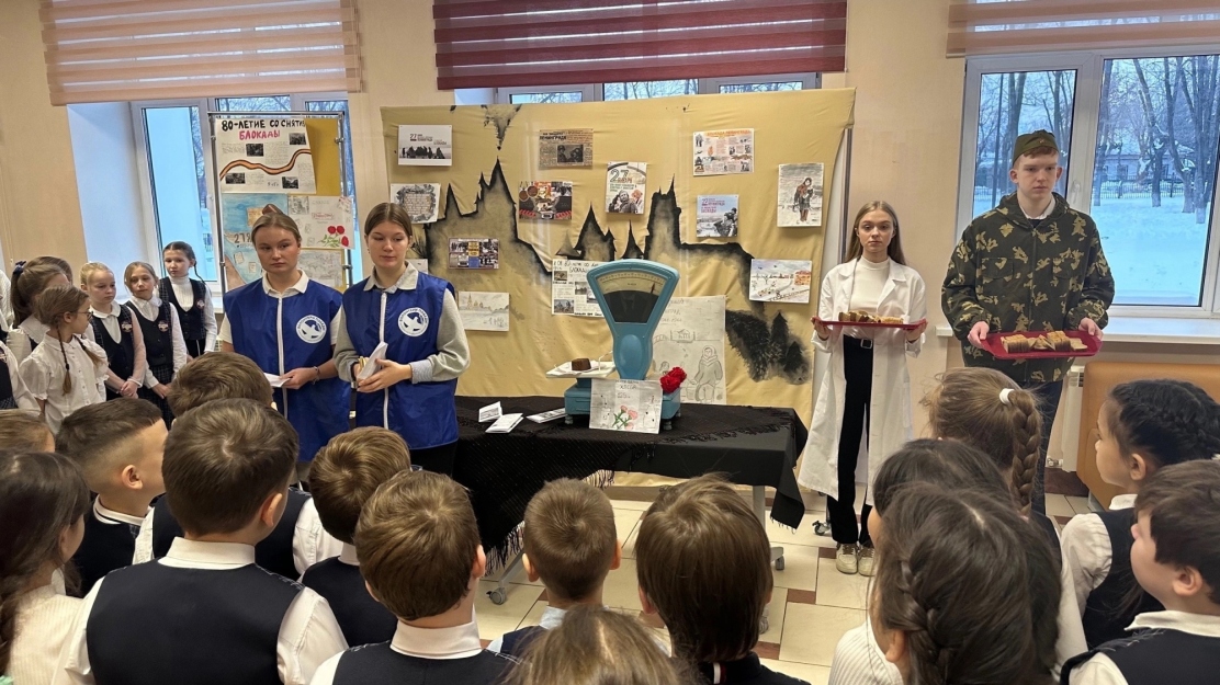 В ходе урока Волонтёры Победы рассказали о жизни блокадного Ленинграда. Участники увидели размеры кусочка хлеба, на который люди выживали, узнали из чего он состоял. С помощью небольшого фильма послушали несколько историй от ветеранов, которые в разные возраста застали то время. Все истории показали, что люди были смелыми, отважными, а главное - человечными и сострадающими.