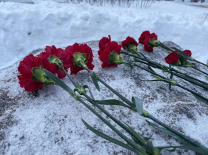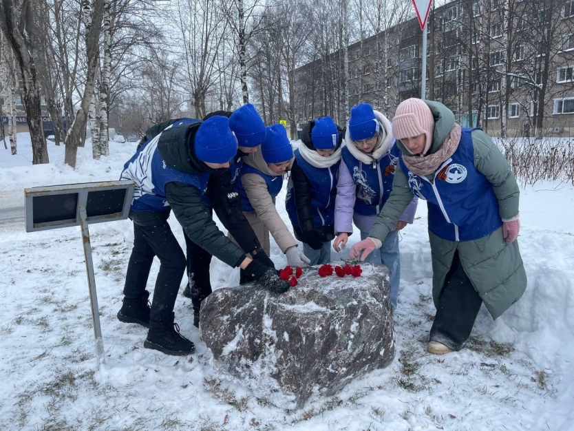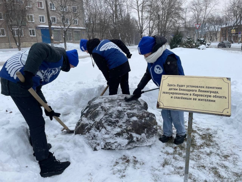 В этот памятный день Волонтеры Победы расчистили от снега территорию, почтили память и возложили цветы к закладному камню памятника «Детям блокадного Ленинграда».