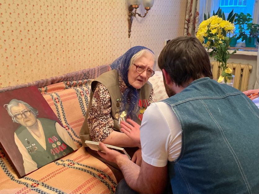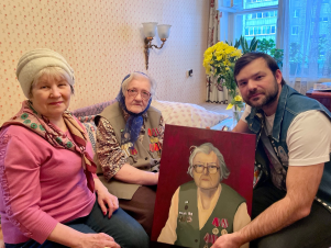 Волонтёры Победы навестили Дину Николаевну и подарили её портрет, нарисованный волонтёрами на региональном слёте.