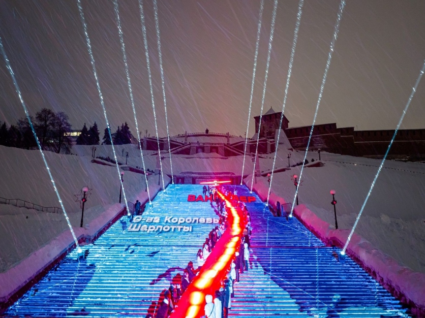 Чкаловскую лестницу украсил мэппинг от студии dreamlaser с картой территорий, над которыми Валерий Чкалов совершил беспосадочный перелет. В кульминационный момент флешмоба над лестницей появилась цитата летчика-испытателя «Если быть, то быть первым», а участники на самой лестнице и у памятника Валерию Чкалову зажгли фонарики, подняли их вверх, символизируя световой поток.