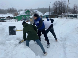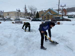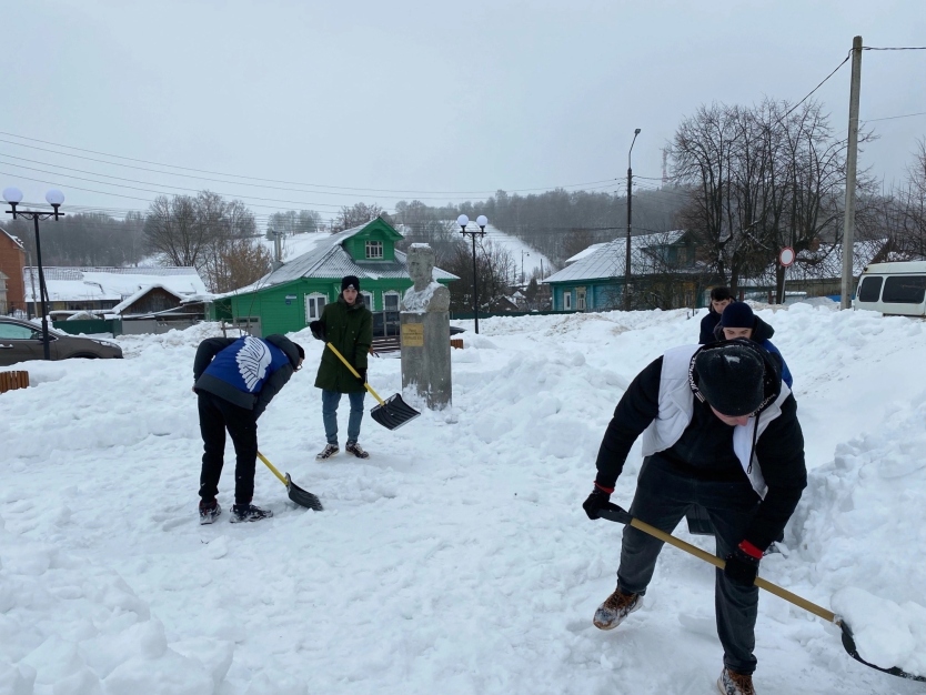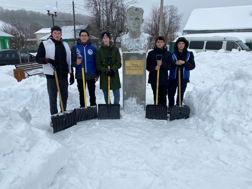 Волонтёры провели расчистку снега на территории памятника Герою Советского Союза Беседина Александра Васильевича.