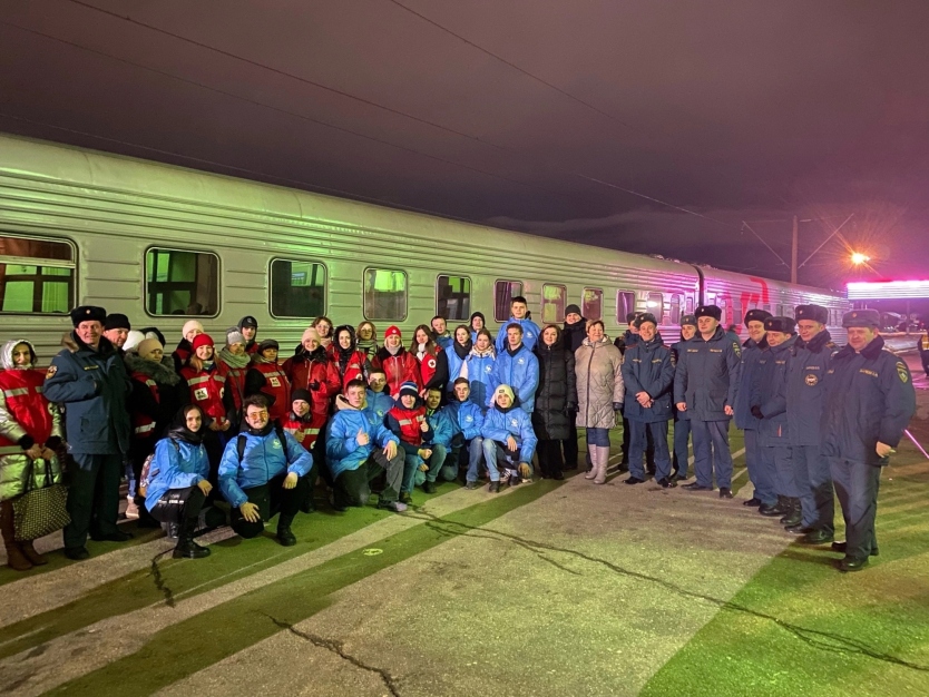 Торжественно проводить гостей нашего региона и помочь им разместиться в вагонах поезда сюда — на перрон станции, прибыли сотрудники Министерства Российской Федерации по делам гражданской обороны, чрезвычайным ситуациям и ликвидации последствий стихийных бедствий, медики, представители органов власти, участники Всероссийского общественного движения «Волонтёры Победы», а также волонтеры Общероссийской общественной организации «Российский Красный Крест».