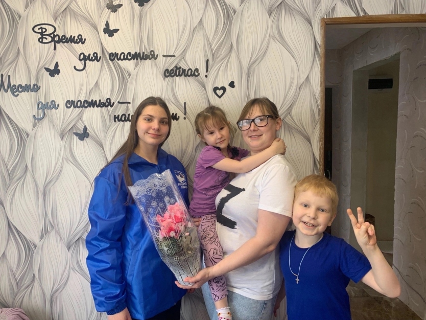 В преддверии Международного женского дня в Сухиничском районе участники Всероссийского общественного движения «Волонтёры Победы» навестили и поздравили с наступающим праздником семью военнослужащего Вооружённых Сил Российской Федерации, принимающего участие в специальной военной операции, Кирилла Вячеславовича Гончарова.