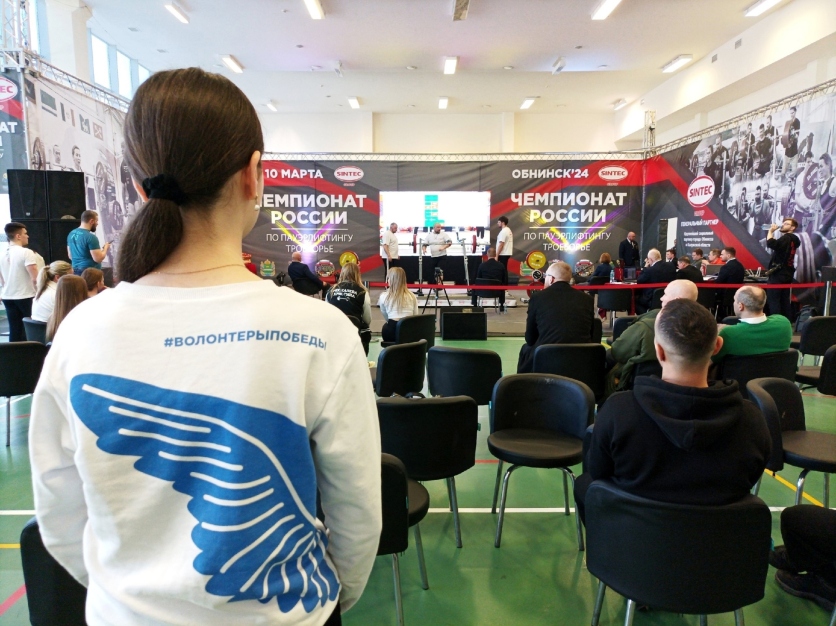Уже второй день подряд в Обнинске участники Всероссийского общественного движения «Волонтёры Победы» помогают министерству спорта Калужской области в проведении значимого для всего нашего региона спортивного события — чемпионата России по пауэрлифтингу.
