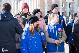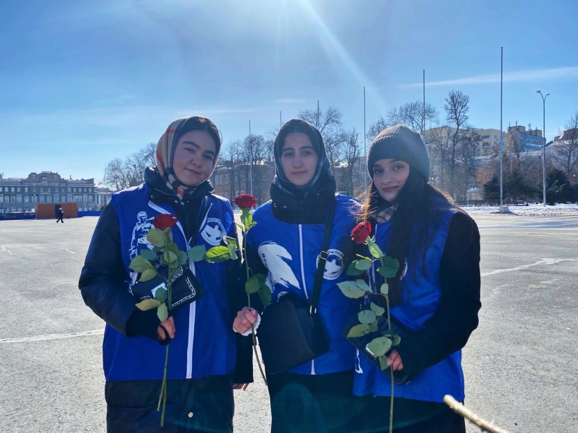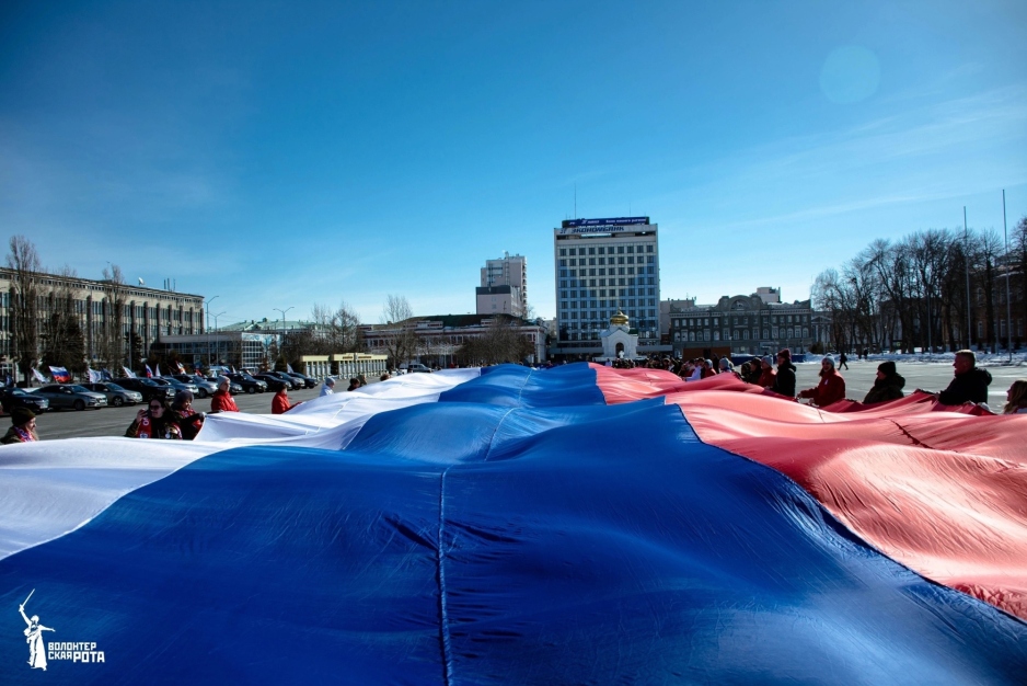 Сегодня, в Международный женский день на главной площади региона состоялась патриотическая акция "Женщины.Весна.Россия"! Активисты молодежных общественных организаций поздравили жен и матерей военнослужащих и участниц общественного движения «Жены Героев», совместно с председателем Саратовской областной Думы Михаилом Исаевым и развернули 80 метровый триколор Российской Федерации