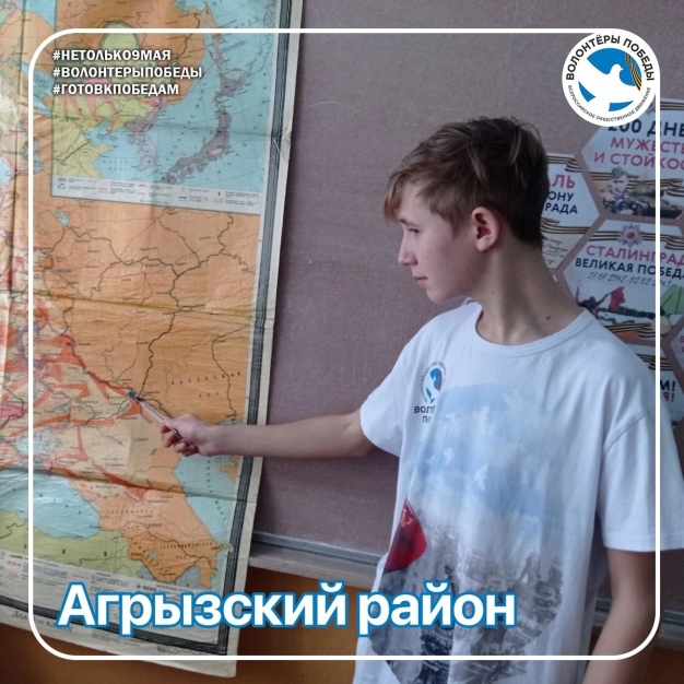 Волонтёры Победы Агрызского района провели урок для 7 классов, на котором рассмотрели на карте расположение Сталинграда, место окружения немецкой армии. Также была организована виртуальная экскурсия по Мамаеву кургану и Музею-панораме Сталинградской битвы. Занятие завершилось интеллектуальной познавательной викториной «Сталинградский перелом».