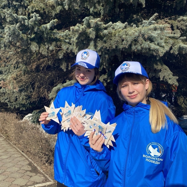 Добровольцы вышли на улицы районного центра и предложили жителям ответить на несколько вопросов, связанных с судьбами и историями героических подвигов соотечественников, удостоенных высочайшей награды. Помимо этого, на память всем участникам акции Волонтёры Победы вручали небольшие листовки, свёрнутые в виде пятиконечной звезды, на внутренней стороне которых была размещена информация об одном из калужан, удостоенных звания Героя Российской Федерации. Всего на сегодняшний подобное звание присвоено пятерым жителям региона. Один из них — Владимир Игнатов, совершил свой подвиг в ходе Специальной военной операции.