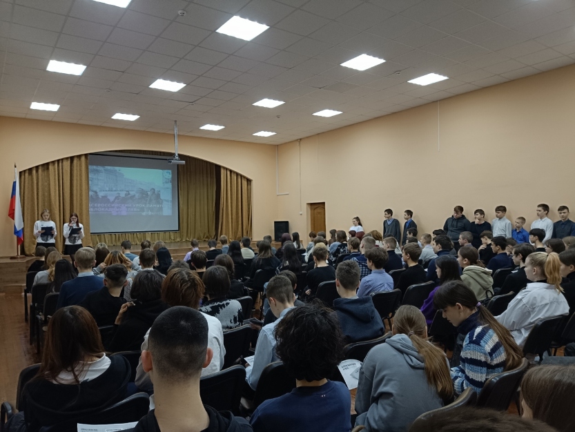 На Уроке памяти «Волонтёры Победы» вместе с учениками разобрали основные события блокады Ленинграда, посмотрели документальный фильм, поучаствовали в блиц-опросе. Более того, каждый желающий получил небольшой кусочек хлеба, являющийся символом блокады.