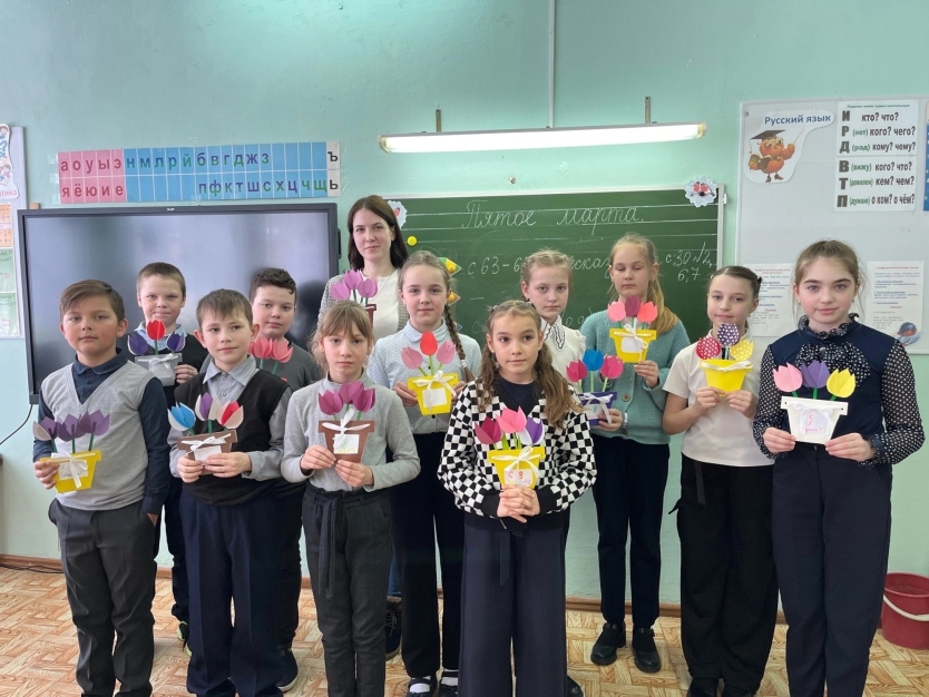 - В МБОУ СОШ №1 г. Покров советник директора по воспитанию в торжественной обстановке поздравила с Международным женским днём родительниц обучающихся школы, супруг и сыновей, которые несут службу в зоне специальной военной операции.