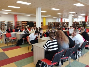 - В День космонавтики, который ежегодно отмечается 12 апреля, во Владимирской областной библиотеке для детей и молодежи «Волонтеры Победы» провели региональную интеллектуальную игру «Космос рядом». В увлекательной игре приняли участие команды обучающихся школ города Владимира, а также вне общего конкурса в викторине попробовали себя и активисты движения «Волонтёры Победы». Игра состояла из тематических блоков: «До полета», «На орбите», «Космос в культуре», «Интуиция». Обучающиеся проявили большой интерес к игре. Ребята обсудили вопросы, связанные с космической отраслью, вспомнили, как зовут первых животных-космонавтов и познакомились с легендарными именами покорителей космоса.