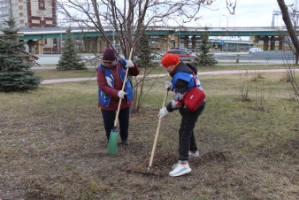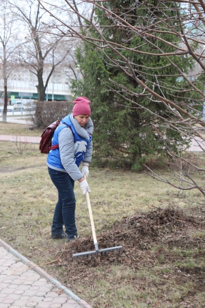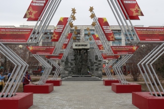 Первый субботник в Тюменской области прошёл в сквере Тружеников тыла, в котором стоит памятник в честь солдат и тружеников тыла, выстоявших и победивших в Великой Отечественной войне 1941-1945 гг.