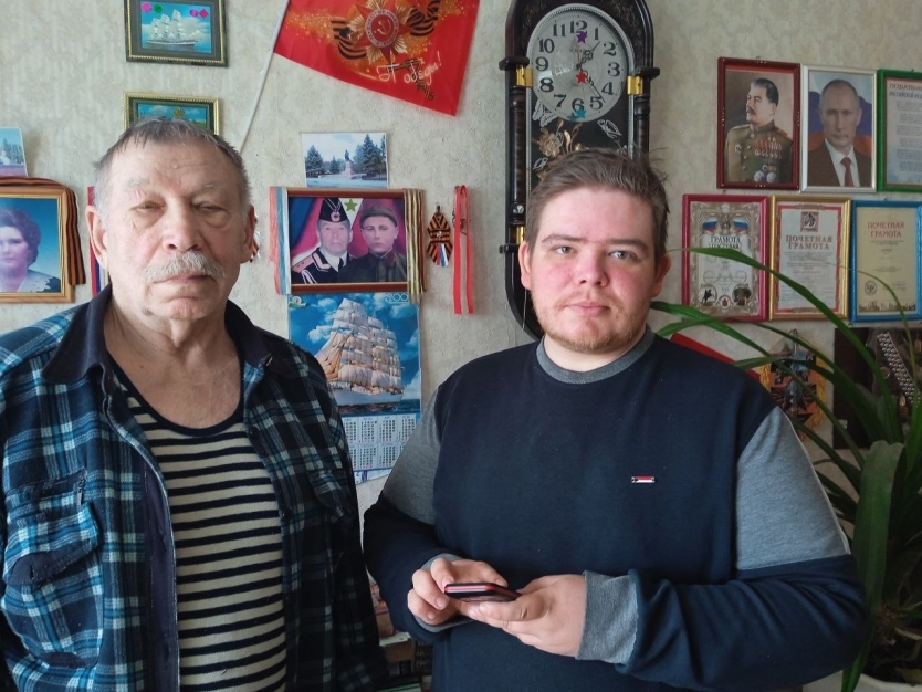 Волонтёры навестили Ивана Петровича Беляева и помогли наладить мобильную связь. Иван Петрович в годы Великой Отечественной войны был ребенком, получил ранение, которое не позволило реализовать его мечты — стать моряком. Но он очень гордится своим дядей — мичманом военно-морского флота и отцом — участником Великой Отечественной войны.