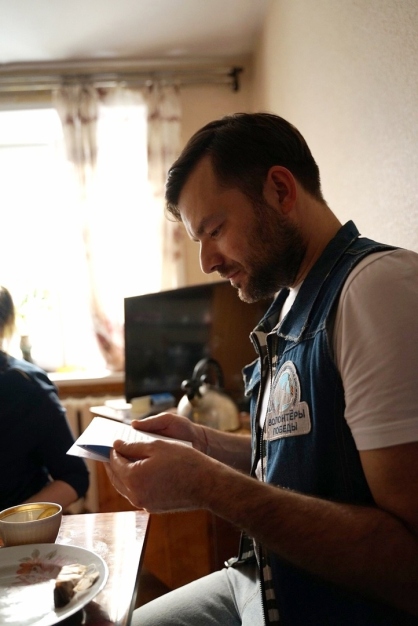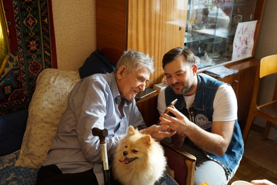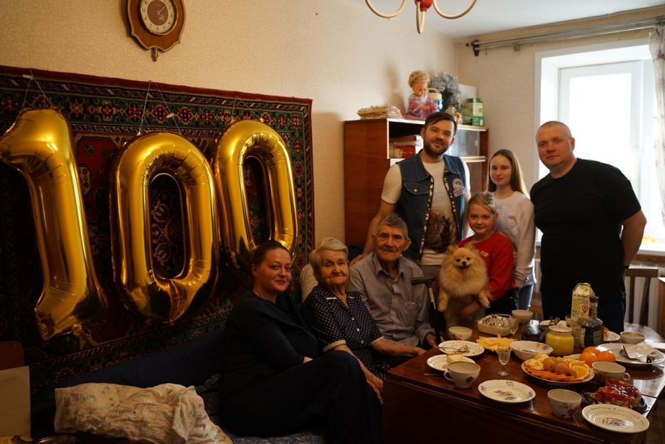 В этот тёплый и солнечный день добровольцы навестили ветерана. За праздничным столом родственники и активисты много смеялись, слушали интересные истории из жизни семьи и зарядились положительными эмоциями.
