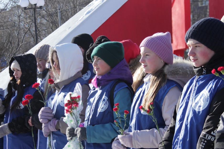 22 февраля сотни жителей Елизовского муниципального района - Волонтёры Победы, ветераны боевых действий, участники спецоперации, военнослужащие, главы района и поселений, депутаты, сотрудники ведомств, кадеты, трудовые коллективы – принесли цветы к мемориалу участникам Великой Отечественной войны.
