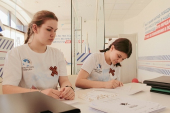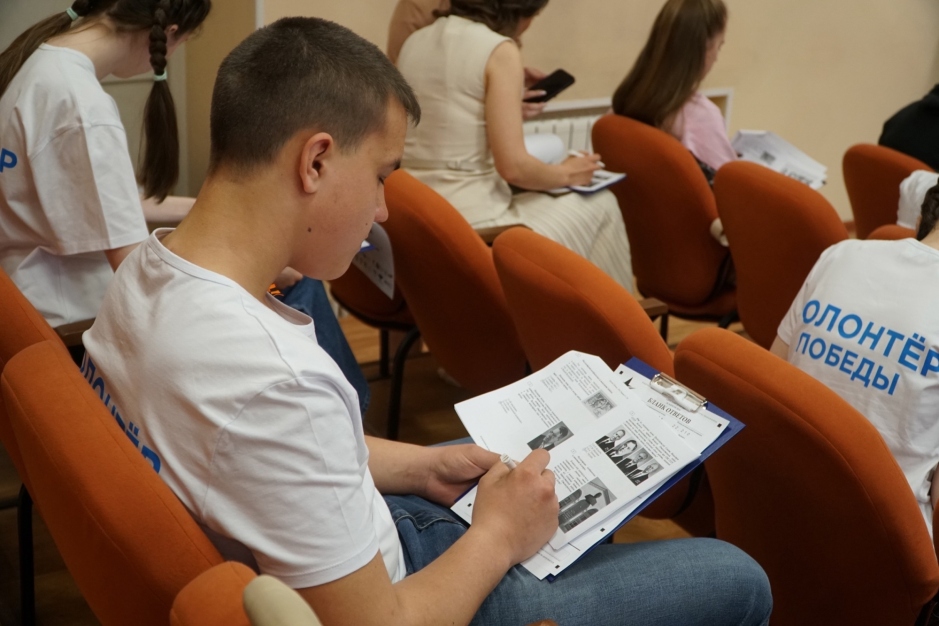 Волонтёры Победы также работали на площадке акции в штабе общественной поддержки. Там собралась самая активная молодежь города, чтобы проверить свои знания отечественной истории. Вопросы Диктанта Победы в этом году были связаны с 80-летием полного освобождения Ленинграда от фашистской блокады, освобождением Крыма и Беларуси и другими памятными датами.