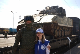 Наши активисты также смогли посетить вагоны с экспозициями Сухопутных войск, Воздушно-космических сил, Военно-морского флота, Воздушно-десантных войск, «Юнармии» и др. Часть выставочного пространства посвящена подвигам военнослужащих Российской Армии в ходе спецоперации.