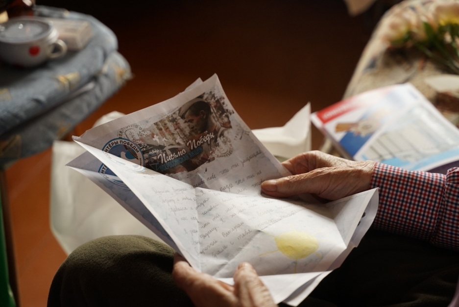 Добровольцы прочитали письма от школьников со словами благодарности, душевно пообщались с ветеранами, вручили памятные подарки.