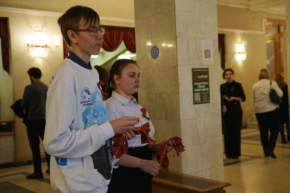 В преддверии Дня Победы добровольцы раздали символ воинской славы первым лицам и жителям города Кирова.