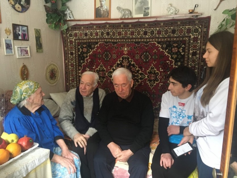РО ВОД "Волонтеры Победы" в лице студентов КЧГУ совместно с Председателем Совета ветеранов Алиевым Ракаем Мухтаровичем, с Председателем Совета ветеранов войны и труда г. Теберда Карачаевск Муссакаевым Борисом Бекировичем и заслуженным ветеренарным врачом Украины и КЧР, члена Совета ветеранов войны и труда г. Карачаевске Кубековым Сапаром Ахматовичем навестили блокадницу ВОВ: Ткаченко Лидию Александровну.