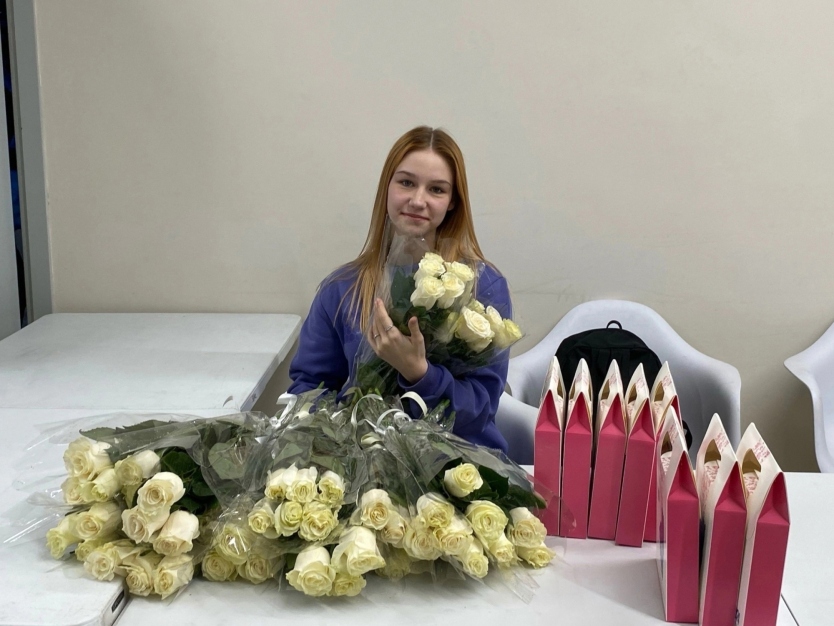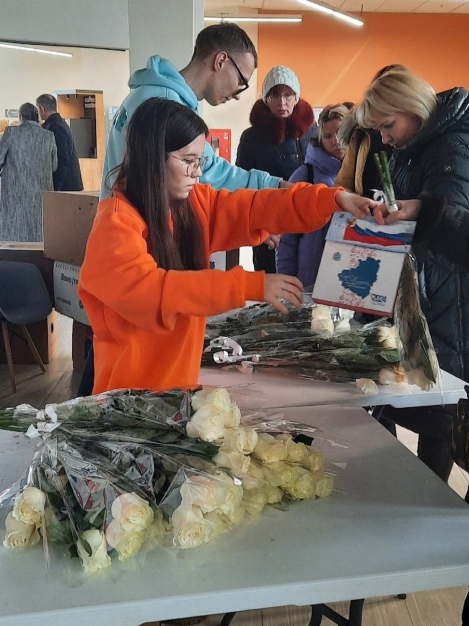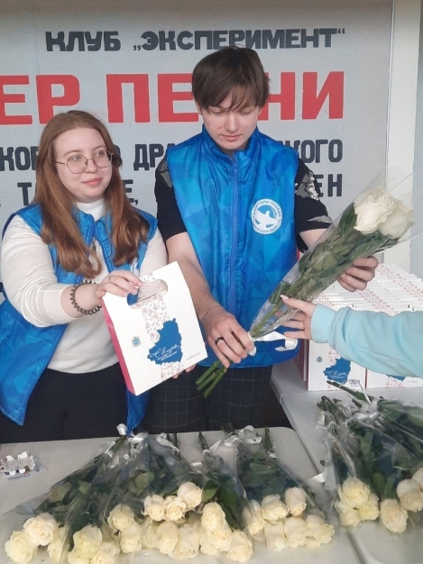 В организации мероприятия помогли Волонтёры Победы. Ребята старались создать атмосферу праздника и гордости за нашу Родину, а также поздравили с наступающим праздником зрительниц. Добровольцы помогли во вручении подарочных наборов и цветов.