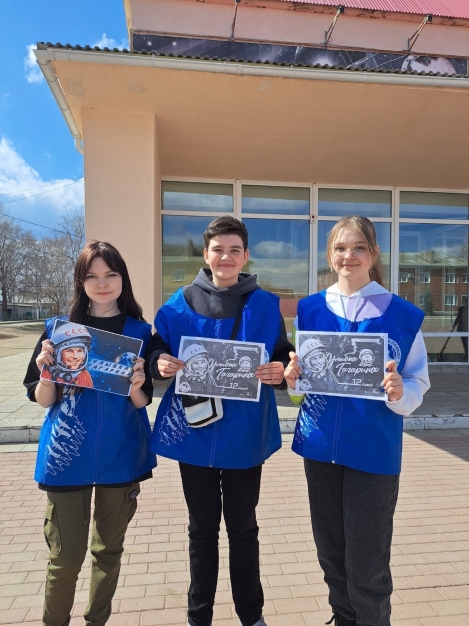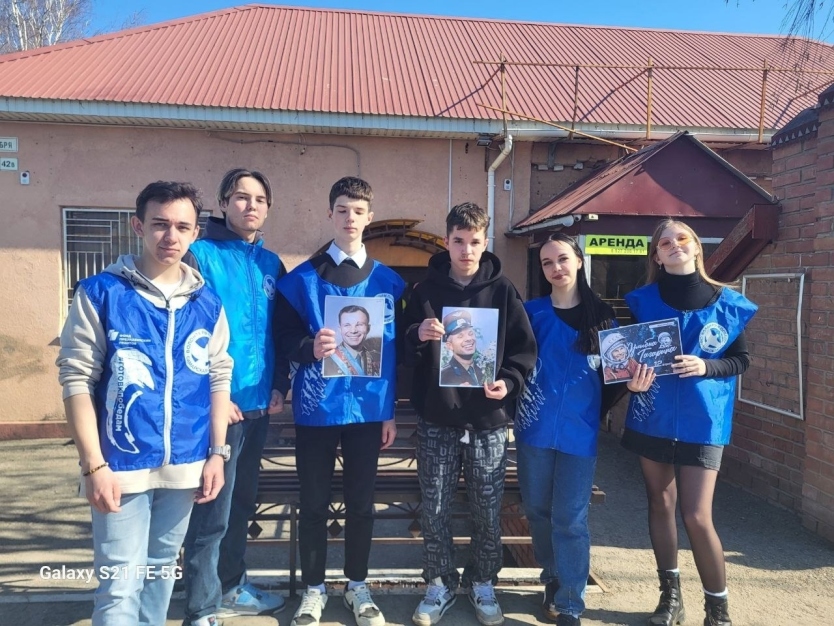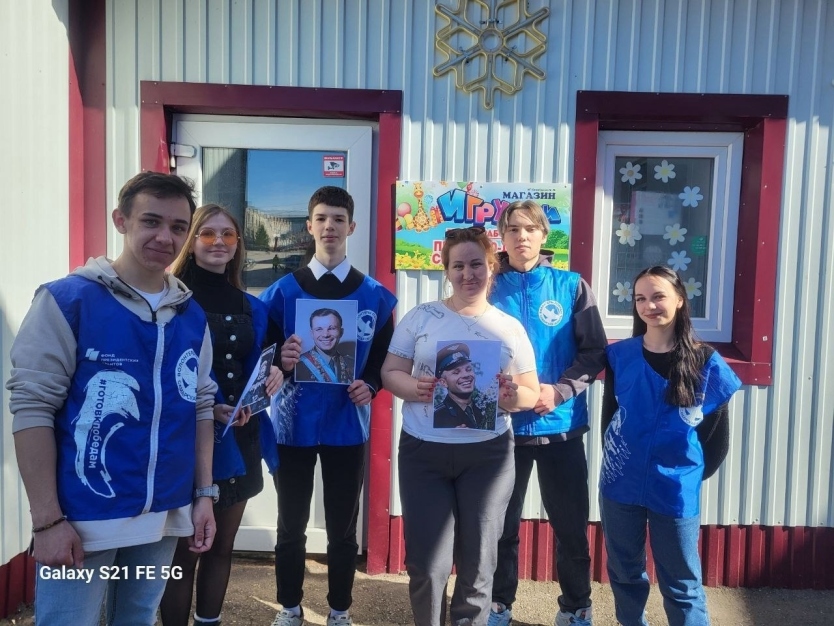 Сегодня Волонтёры Победы вышли на улицы родных городов, посёлков и сёл, чтобы предложить землякам повторить знаменитую улыбку Юрия Гагарина и сфотографироваться с одним из его портретов, а также вспомнить о первом полёте человека в космос.