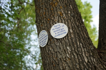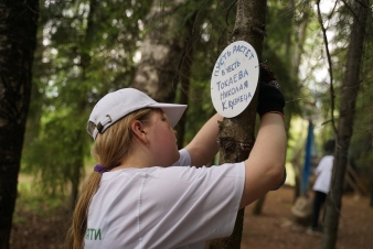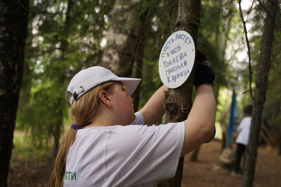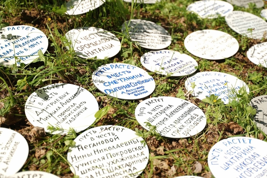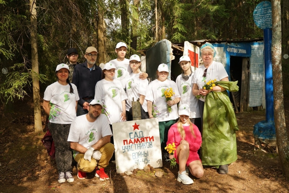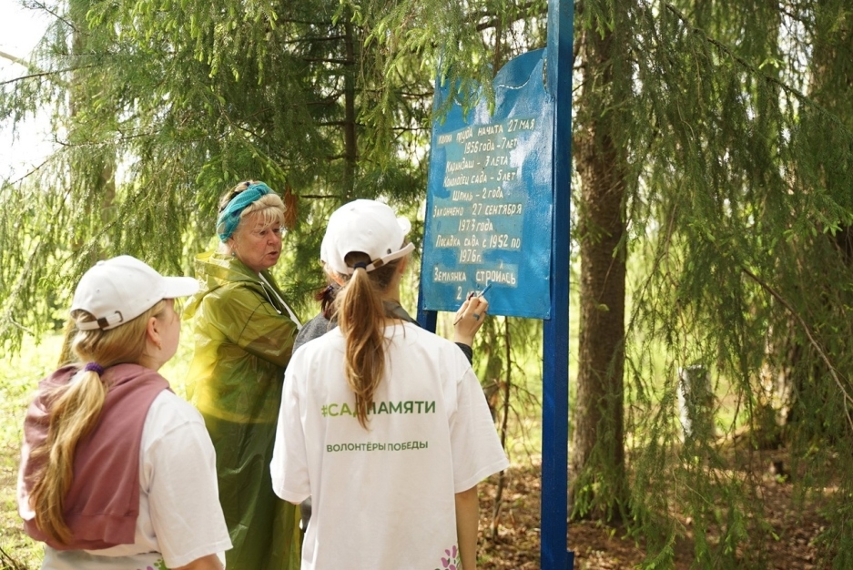 Активисты убрали засохшую листву, обновили железный корабль, сделав его более ярким, и прикрепили заготовленные ранее ими таблички к деревьям, так как прошлые таблички с течением времени пришли в негодность. На них нанесены имена и фамилии тех, кто погиб в годы Великой Отечественной войны из деревень Соловьи и Леушино, имена фронтовиков, пришедших с войны и людей, которые помогали ему в создании Сада Памяти.