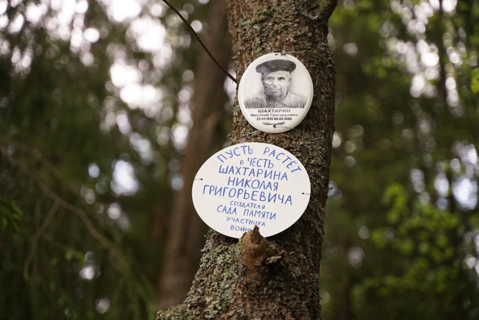 Основателем данного сада стал Шахтарин Николай Григорьевич, участник Великой Отечественной войны. Он первый в России, кто создал такой «Сад Памяти».