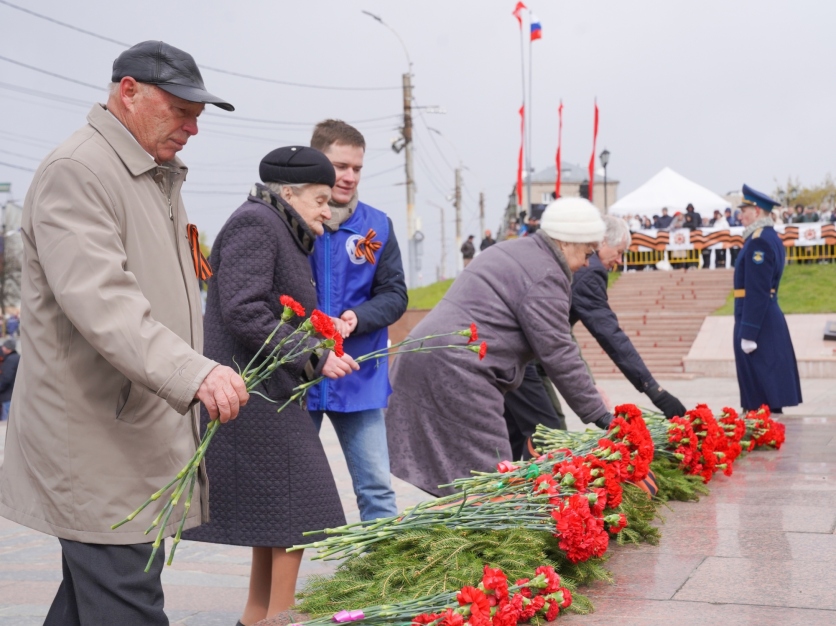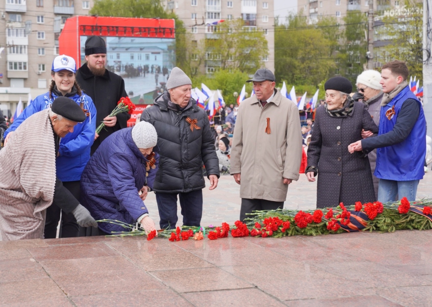 У Мемориала Героям фронта и тыла в честь 79-ой годовщины Победы в Великой Отечественной войне прошел торжественный митинг и шествие войск ивановского гарнизона. Перед митингом губернатор региона Станислав Воскресенский лично пообщался с ветеранами и поздравил с Днём Великой Победы.