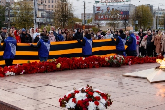 Напомним, что «минута молчания» впервые вышла в эфир в 1965 году. Вот уже более 55 лет она ежегодно объявляется по всей стране 9 мая в 18.55 в теле- и радиоэфире. Это дань памяти погибшим в годы войны. В завершении мероприятия активисты движения «Волонтёры Победы» вручили всем участникам акции символ воинской доблести и славы - Георгиевскую ленту.