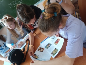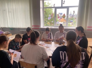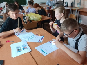 - В Мезиновской СОШ Гусь-Хрустального района: в квест-игре приняли участие дети школьного лагеря 6-8 классов, заранее разделившиеся на команды. А волонтёры помогли им окунуться в культуру нашей страны, организовывая различные испытания.