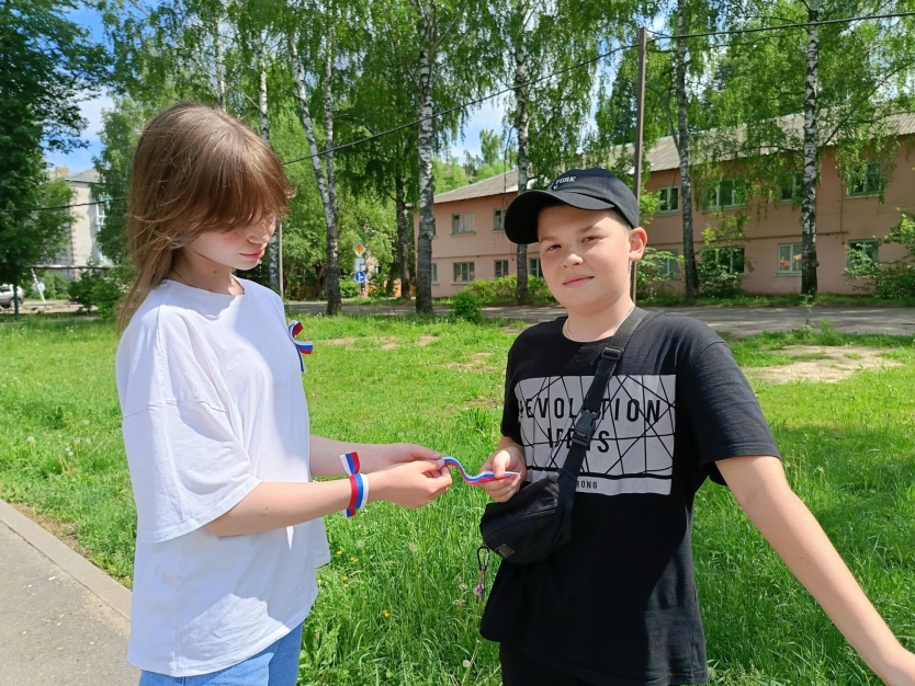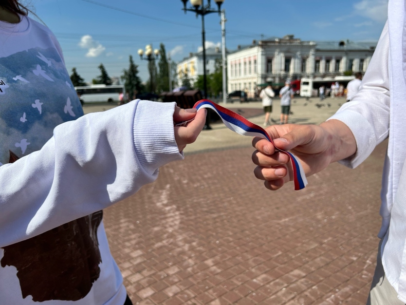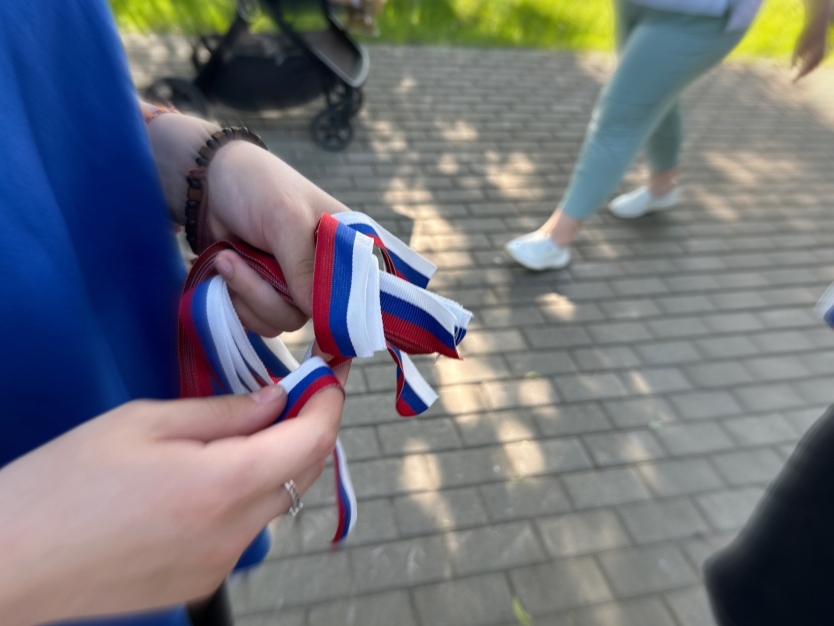 При получении ленты жители узнали историю праздника и значение цветов на флаге. Каждый с гордостью принял от Волонтёра Победы Российский триколор. Было интересно послушать истории граждан, где они рассказали о значении триколора лично для них.