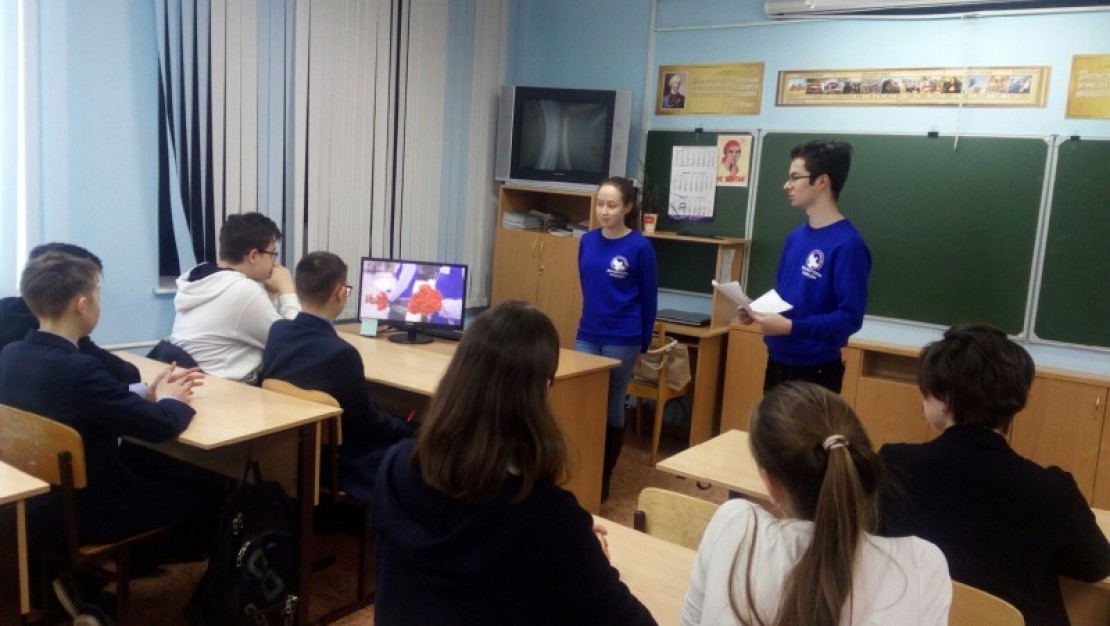 Екатерина Абржина, региональный координатор направления "Моя История", и Виктор Сорокин, заместитель регионального координатора, познакомили ребят с движением, рассказали об основных направлениях и показали яркие видеоролики, о нашей деятельности.