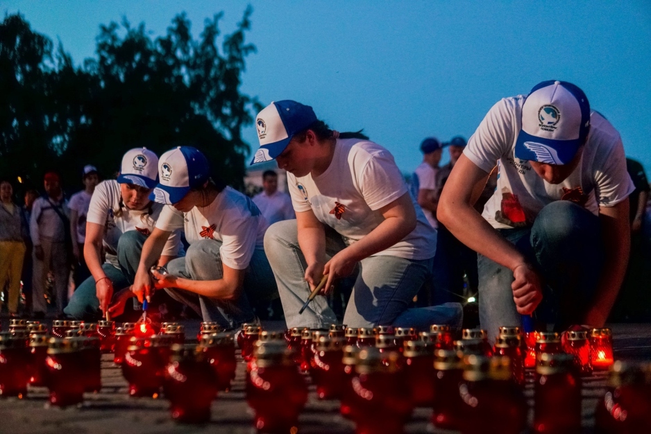 22 июня в каждом уголке Алтайского края зажглись сотни свечей в память о героях Великой Отечественной войны. В Бийске ровно в 4 часа утра прошла Всероссийская акция «Свеча памяти». Волонтёры Победы местного отделения возложили цветы к Мемориалу воинам-бийчанам, зажгли свечи и выложили надпись «Бийск помнит». Активисты почтили память минутой молчания всех тех, кто отдал свою жизнь за Великую Победу, за свободу и независимость нашей Родины, за мирное небо над головой.