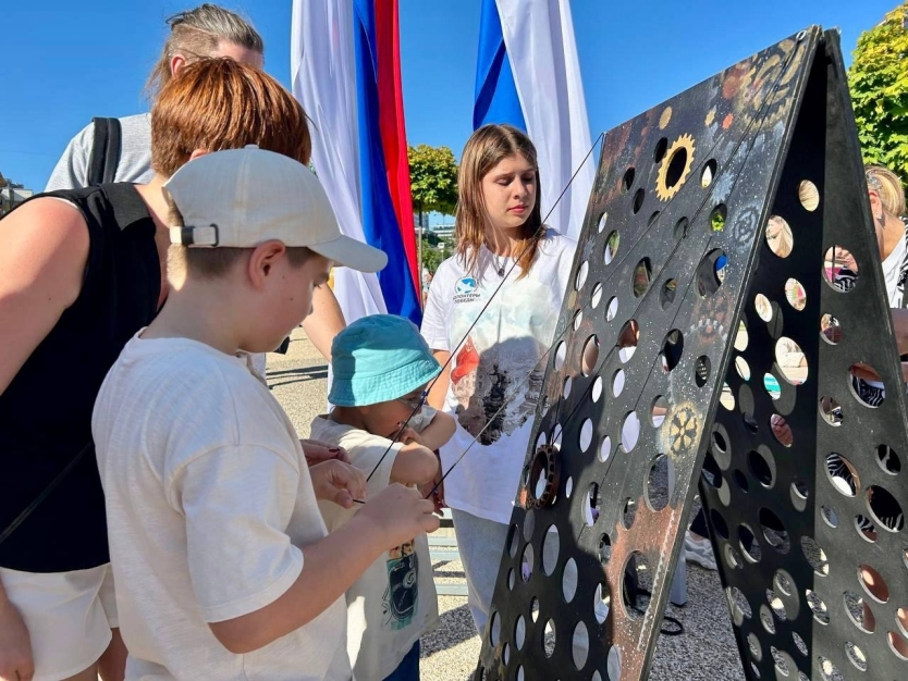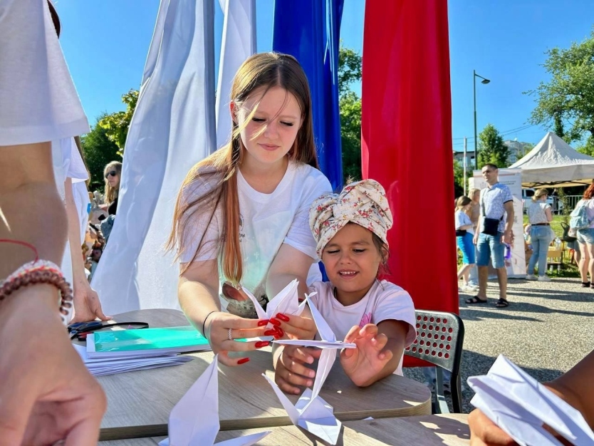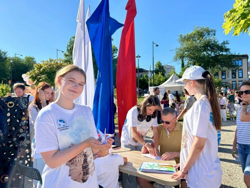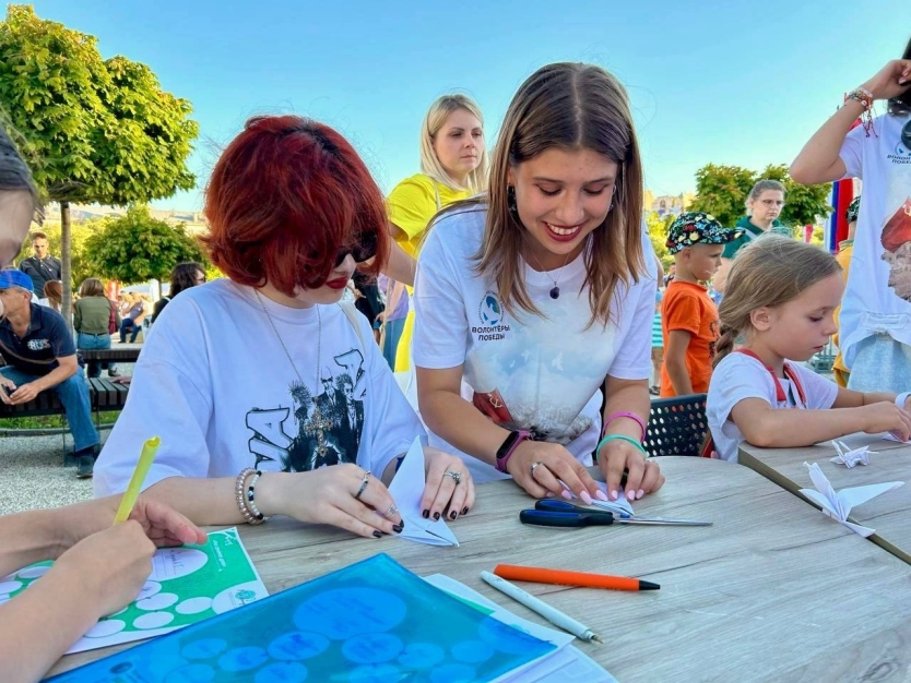 Также волонтеры проводили мастер-класс по изготовлению голубя в технике оригами, и с помощью деревянной игры проходили "космический путь" Юрия Гагарина.